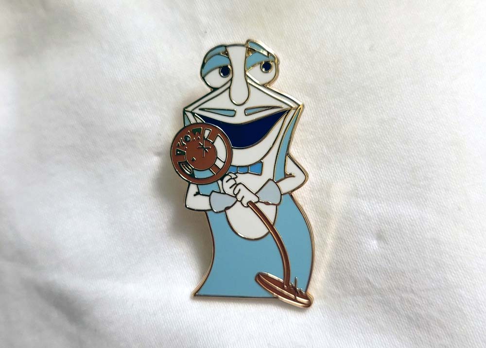 Such as this pin, from the long extinct show “Food Rocks!” and “Kitchen Kabaret” that was at The Land pavilion at Epcot. We found it on a pin trading board when a cast member asked if we knew who that character is. Boy, did we! A few moments and one pin trade later, this pin came home with us to be housed in our ‘special collection’.