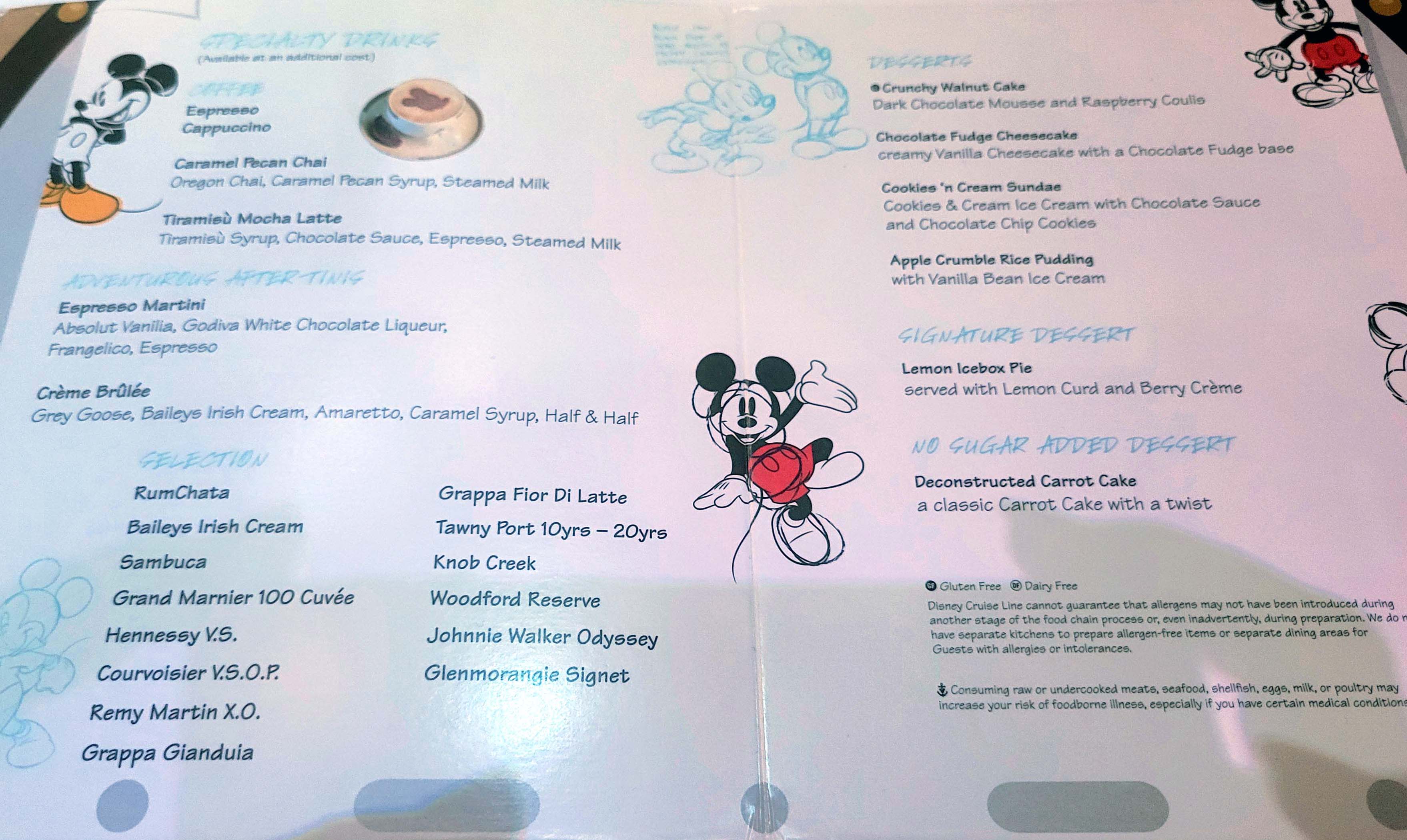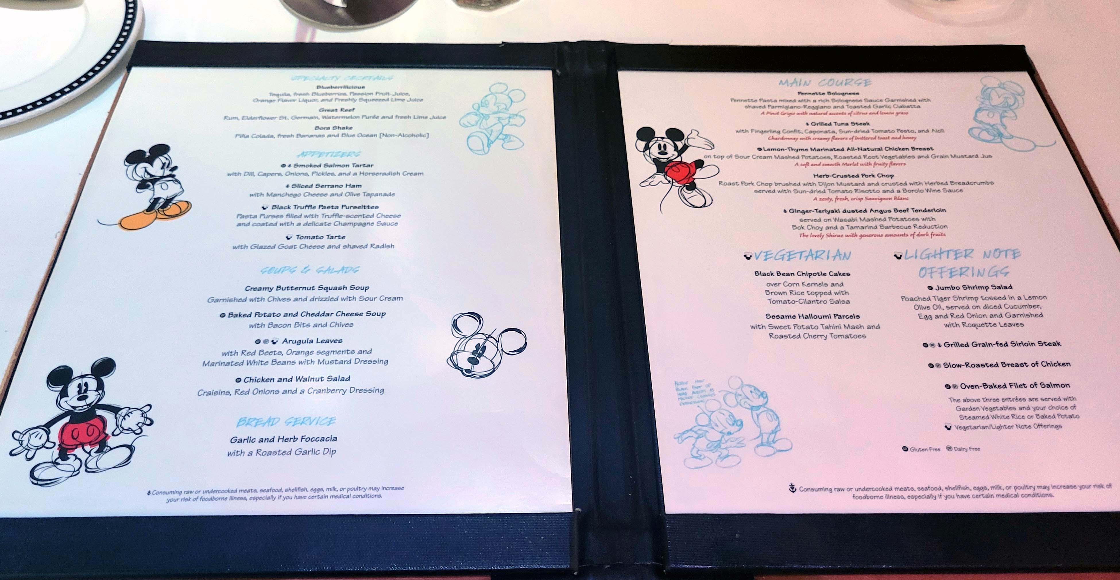 So far, the Disney Fantasy isn’t exactly batting 1000 when it comes to dinner. Enchanted Garden was good, Royal Court wasn’t so great. Hopefully Animator’s Palate will fall somewhere in the middle? There’s only one way to find out!