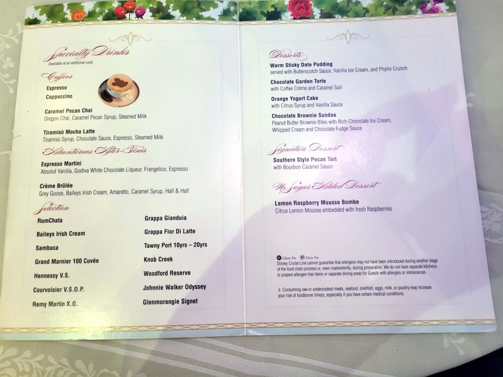Here’s a look at the Enchanted Garden dessert menu if you’re interested.