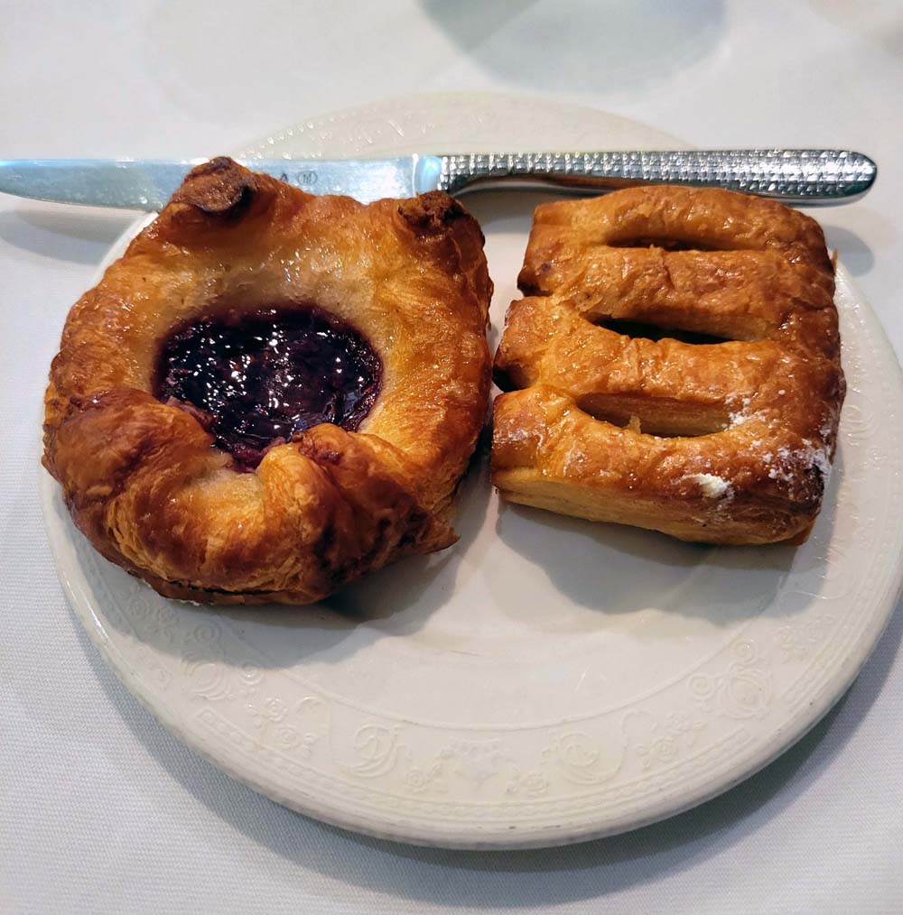 For our cruise, they appeared on our sea day. While many people brave the buffet to acquire these (and bring some home), we sheepishly asked our server at breakfast if they would be able to bring us some and sure enough, two appeared a few moments later.