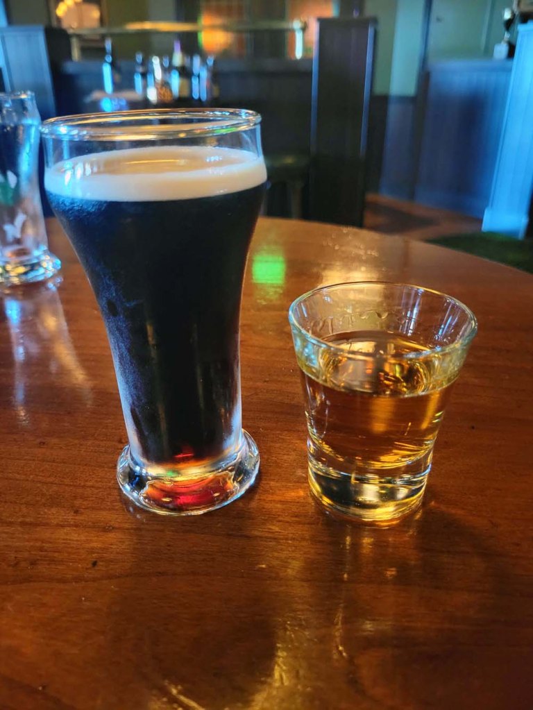 Normally, it would be a pint of Guinness that you drop the shot glass into. For this tasting, we were told to enjoy half of the Guinness first, then pour the whiskey shot into it before drinking the rest.