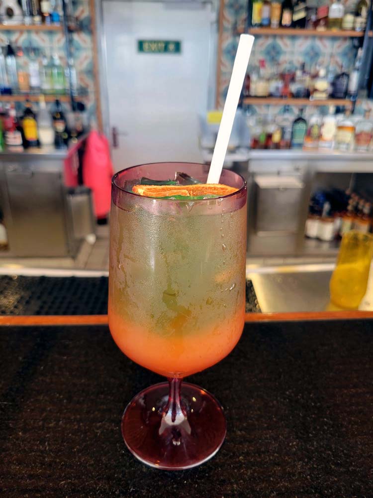 We’ve had this drink of the day numerous times. It’s not our favorite. It is on-theme for Castaway Cay and the upcoming Pirate Night later that evening. That being said: if you’re not a fan of melon, skip this one. The Midori melon comes in strong on this one. We’re not saying it’s disappointing, we’re saying we’re not fans because of the melon flavor.