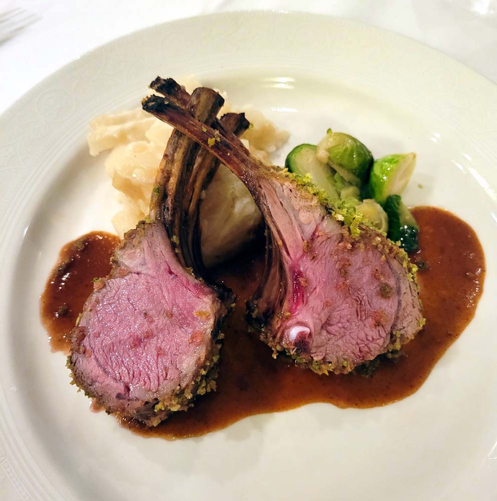 The potatoes and Brussels sprouts on the side were fine as side dishes. While not served with a mint jelly, there was a burgundy rosemary sauce which was a more welcome addition instead. Overall, this is a great choice for dinner!